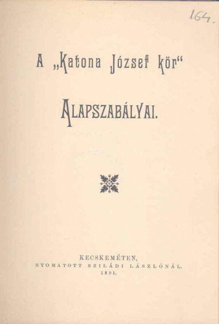 - A Kecskeméti Katona József Kör 1891-2-diki évkönyve. Kecskemét, 1893.