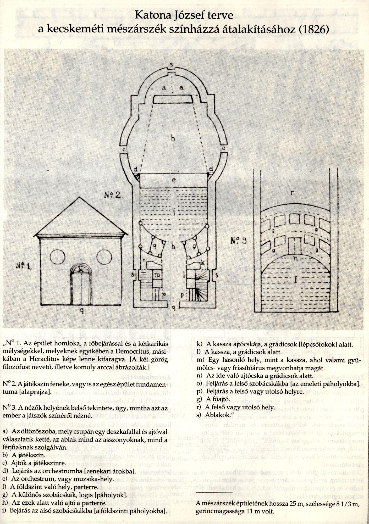 A terv takarékos: a mészárszéknek egyelőre csak a közfalait kellene kivenni, s a színészek máris játszhatnának benne; maguk a színtársulatok is hozzájárulnának jövedelmük egy részével a további átalakításhoz. A tervrajz, amelyet szintén Katona készített, az átalakítási lehetőségek figyelembevételén kívül a pesti Rondellában kialakított színház ihlető hatását is mutatja.