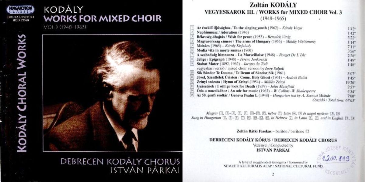 Kodály Zoltán összes vegyeskari műve a Debreceni Kodály Kórus előadásában